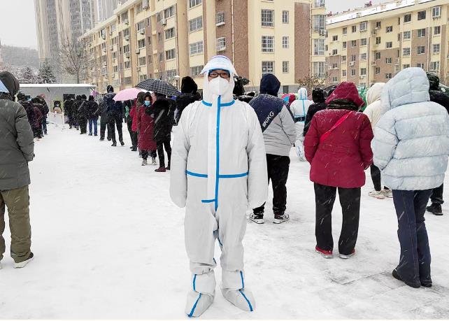 漫天風(fēng)雪,氣溫低至零下,依然擋不住廣大志愿者抗疫的腳步。11月30日以來,集團(tuán)黨員干部職工全力以赴投身在抗疫第一線,在抗疫戰(zhàn)場上“連軸轉(zhuǎn)”。有的干部職工雖然不是黨員,卻在關(guān)鍵時刻沖鋒陷陣,第一時間到社區(qū)報到,支援抗疫工作。有的黨員從12月1日晚上8點(diǎn)就開始在社區(qū)卡口執(zhí)勤,一直干到次日凌晨1點(diǎn),寒風(fēng)刺骨卻無怨無悔。有的黨員老公在單位值守,自己一個人在家照顧孩子,為了支援社區(qū)疫情防控,早上5點(diǎn)就把孩子叫醒讓對門鄰居幫忙照看,義