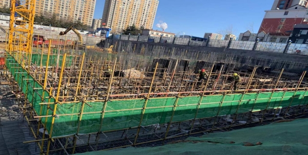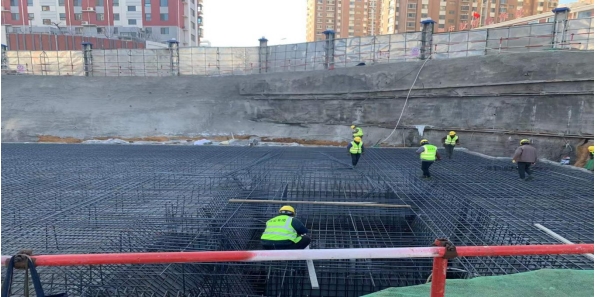 4#樓筏板基礎(chǔ)施工完成,正在綁扎地下2層剪力墻鋼筋及模板支護(hù)工作;