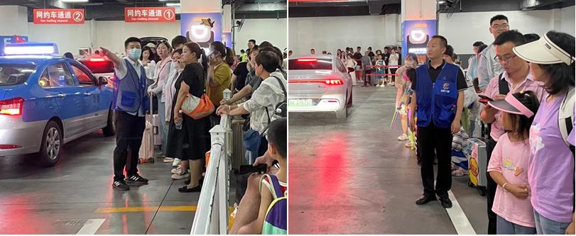 “請(qǐng)您到這邊排隊(duì)上車(chē)”“行李我?guī)湍帷薄罢?qǐng)小心身后車(chē)輛”,活動(dòng)當(dāng)天,地